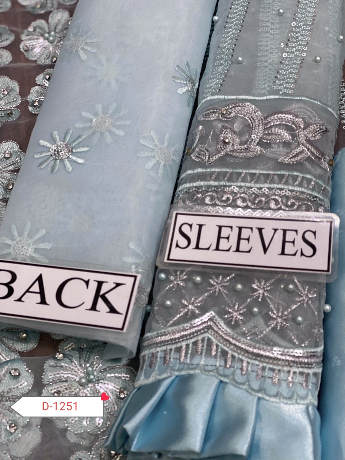 Pakistani Fancy Organza 3PC – Hand Work Suit with Silk Trouser & Embroidered Dupatta